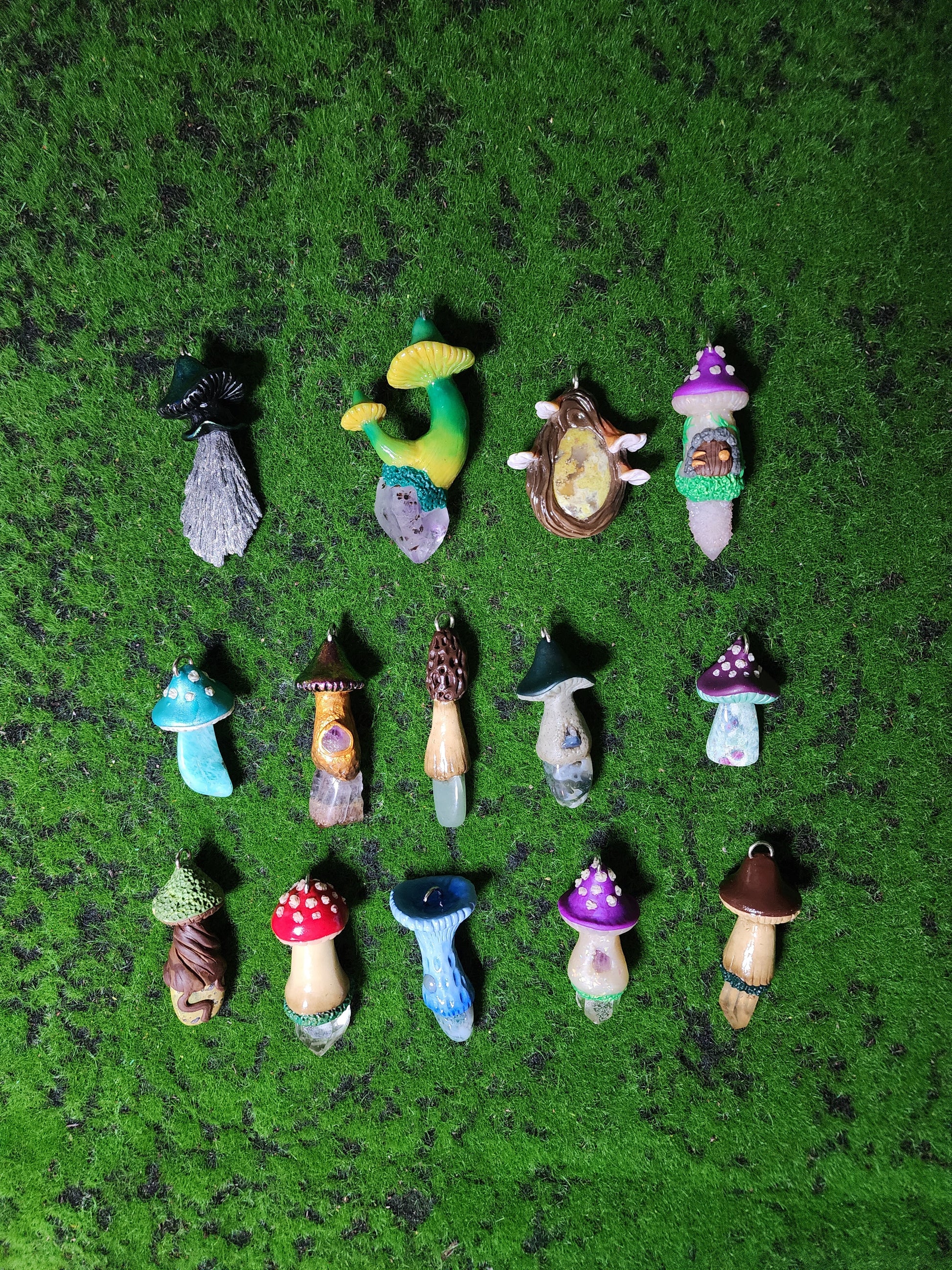 Do you dare let the enchanted log choose a mushroom charm for you? I have created many adorable little shroomies adorned with genuine crystals to enchant this fairy log. Each mushroom has a loop to use as a pendant. Necklace attachments not included. The mushroom selection will be filmed and posted on tik tok for your viewing enjoyment. Remember these are random surprise mushies so no picking the colour! Leave it up to the fairies to decide.